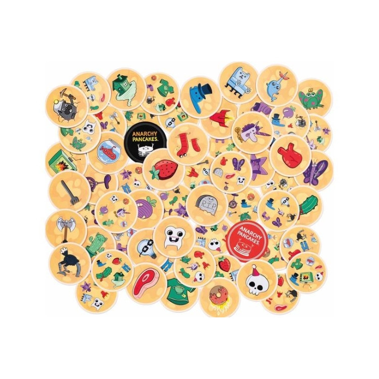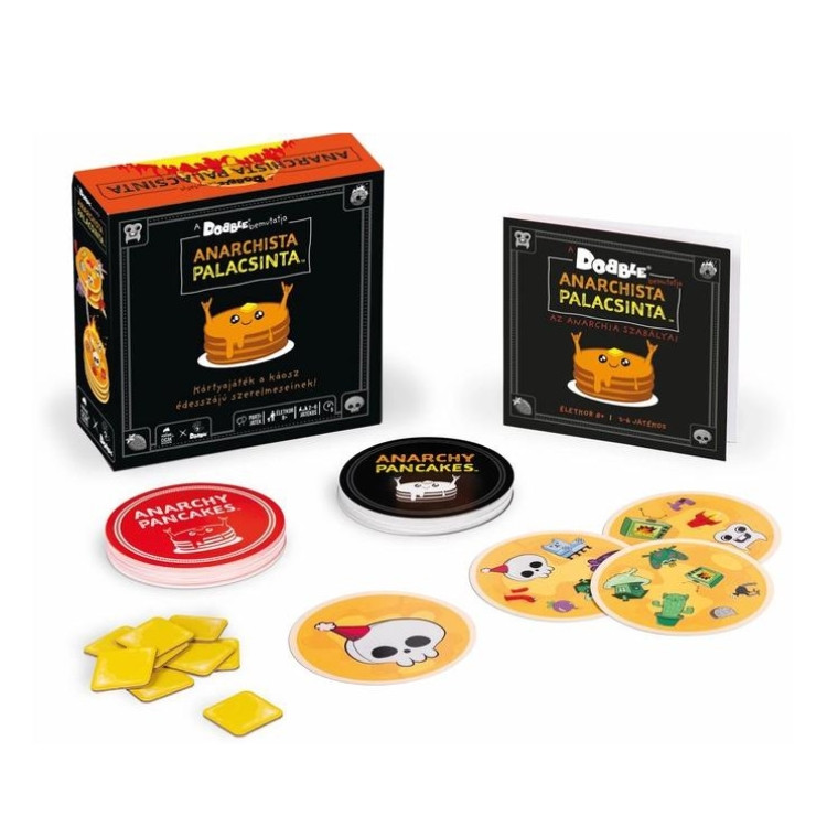 Az Anarchista palacsinta pörgős, zsebre vágható, kaotikus kártyajáték. A kártyákon vicces képecskék láthatók, és a játékosok feladata, hogy a többieknél gyorsabban megtalálják a közös képeket – úgy, hogy az összes kártya egyszerre van játékban! A koncentrációt és a reflexeket fejlesztő társasjáték.