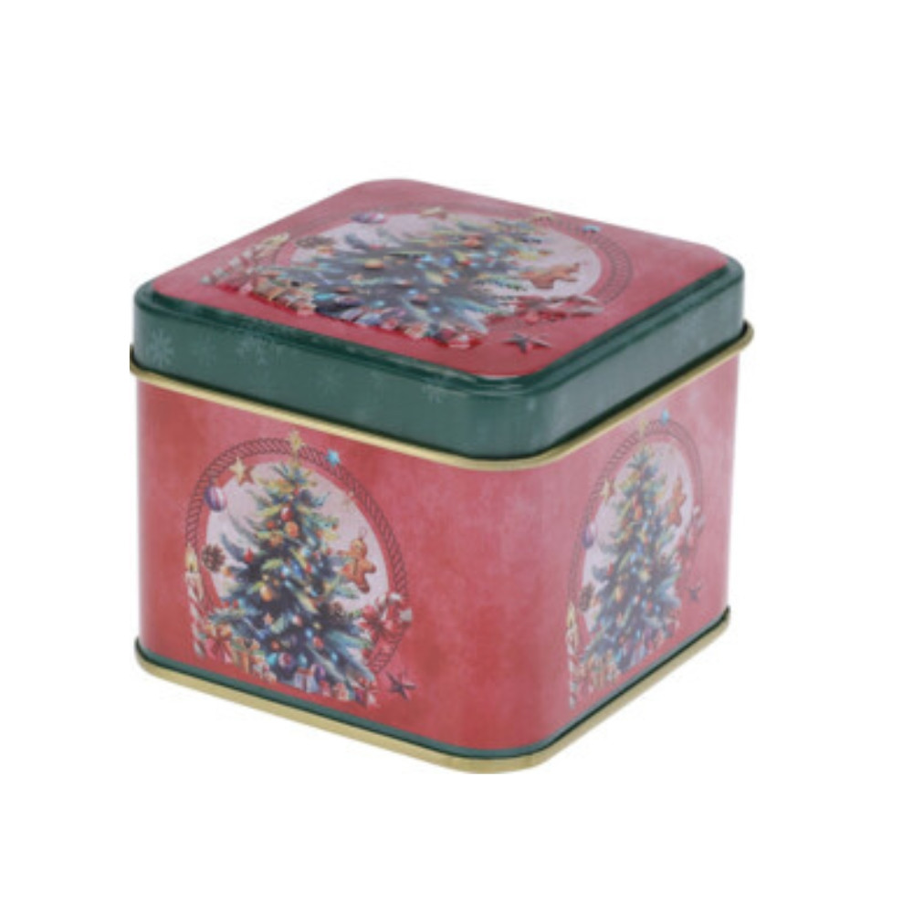 Karácsonyi fém díszdoboz, mini (karácsonyfa)