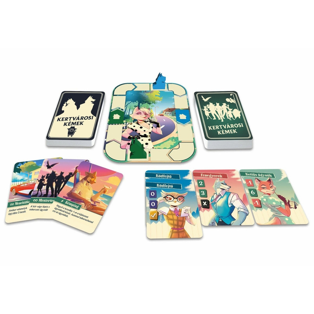 Kertvárosi kémfogó – taktikus, kétfős üldözős kártyajáték, ahol a cél egyszerű: vond be a megfelelő „ügynököket”, maradj észrevétlen, és kapd el az ellenfeled, mielőtt ő ér el téged! A 14 mezős körpályán fut a hajsza, a körödben két lapot játszol (egy felfelé, egy lefelé fordítva), az ellenfeled választ először – a mozgásod az ügynökök típusától és a nálad lévő készlettől függ.
