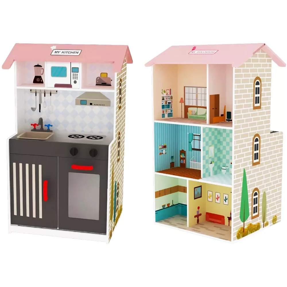 A kétoldalú konyha és babaház helytakarékos megoldás, hiszen egyetlen játékkal válthatjuk ki a játékkonyhát és a babaházat. A két oldalnak köszönhetően több gyermek is tud egyszerre, mégis harmonikusan játszani: az egyik oldalon a sütés-főzés alapjait ismerhetik meg, a másikon a babaház szobáiban alakíthatnak ki hétköznapi vagy éppen mesebeli jeleneteket.