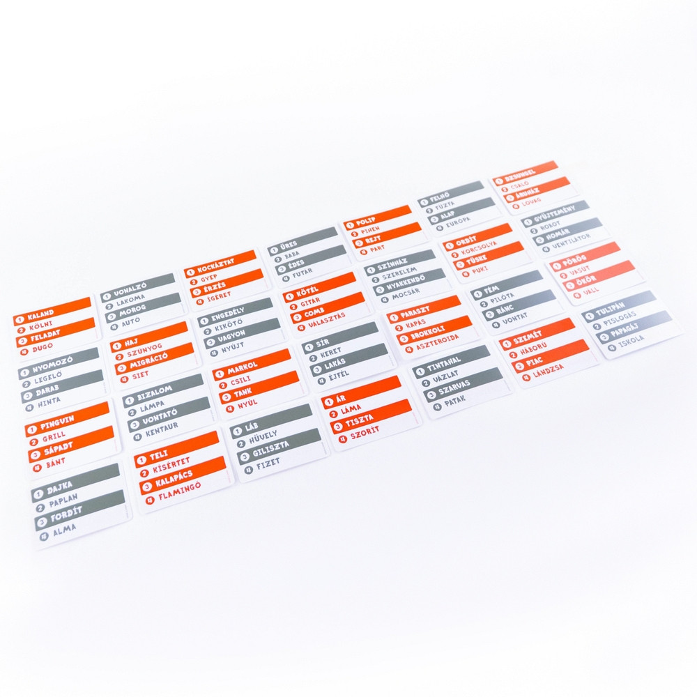 • Nehézítés: tiltsatok be gyakori szavakat (pl. „van”, „nem”), vagy adjatok témát (pl. tárgyak, helyek).