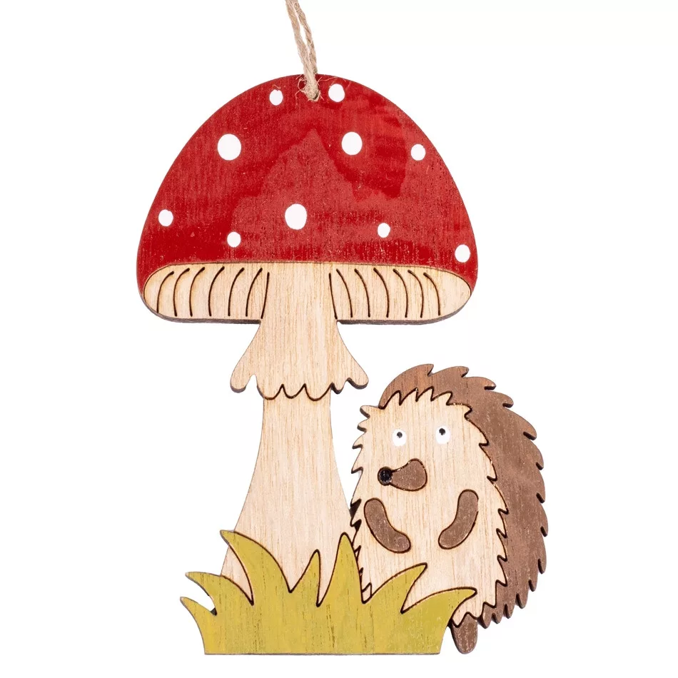 Bájos őszi ajtódísz, amelyen a piros pöttyös gomba és a kedves süni együtt teremtenek meleg, szezonális hangulatot. A természetes fa hatás és az őszi színek miatt ajtón, falon vagy egy hangulatos sarokban is szépen mutat.