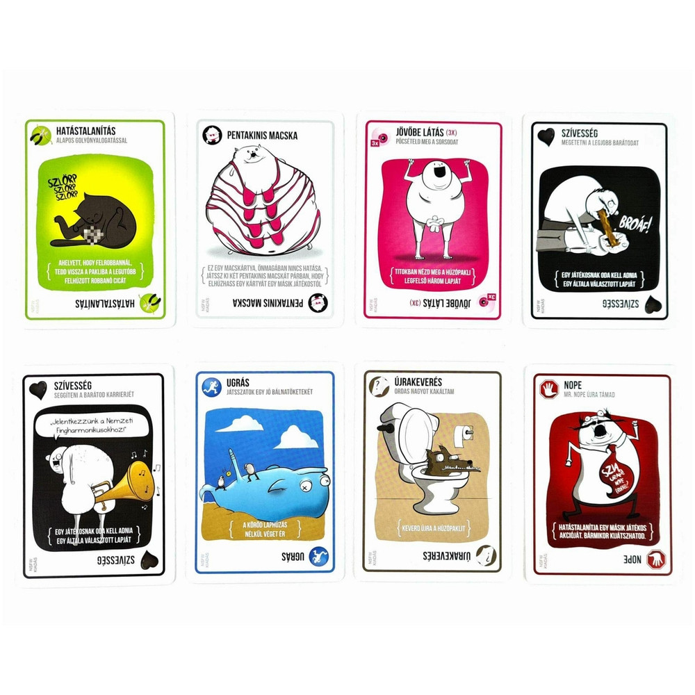 • Tempó és blöff: időzíts okosan – egy jól elhelyezett „nem” (NOPE) lap mindent boríthat.
