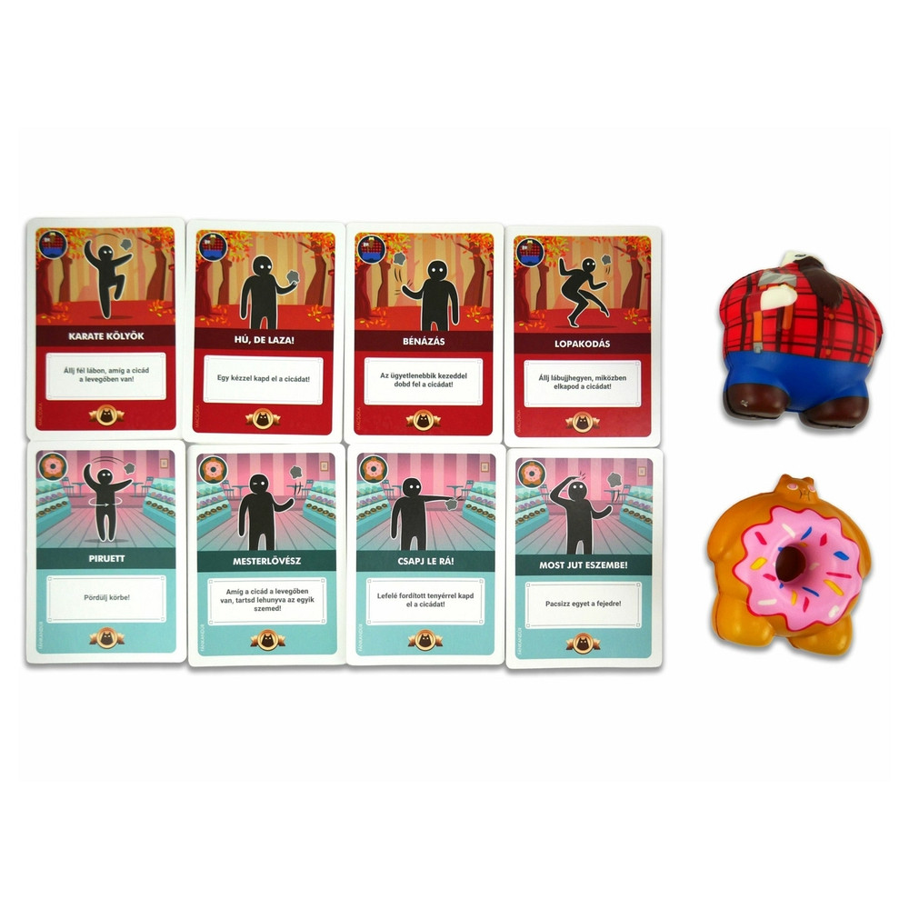 • Teljesítsd az előtted lévő összes mutatványkártya feladatát (taps, lábemelés, pördülés, abszurd mozdulatok stb.).