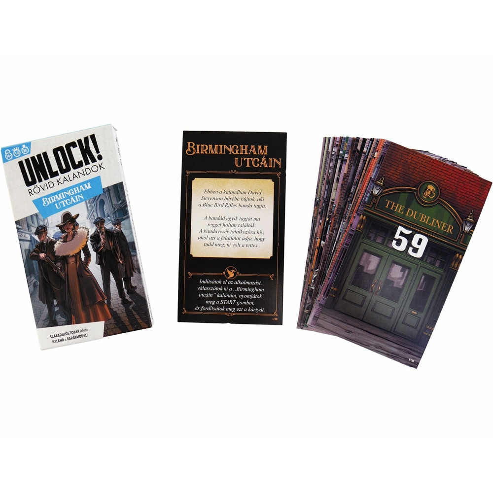 Lépjetek be a híres Birmingham bandájába, és fejtsetek meg egy rejtélyes gyilkosságot! Az Unlock! – Rövid kalandok: Birmingham bandája a szabadulószobák izgalmát hozza el kártyapakli formában. A játék kooperatív és közepes nehézségű: a csapat együtt kutat nyomok után, tár fel helyszíneket és old meg rejtvényeket, hogy lépésről lépésre feltárja a történet mélyebb rétegeit.