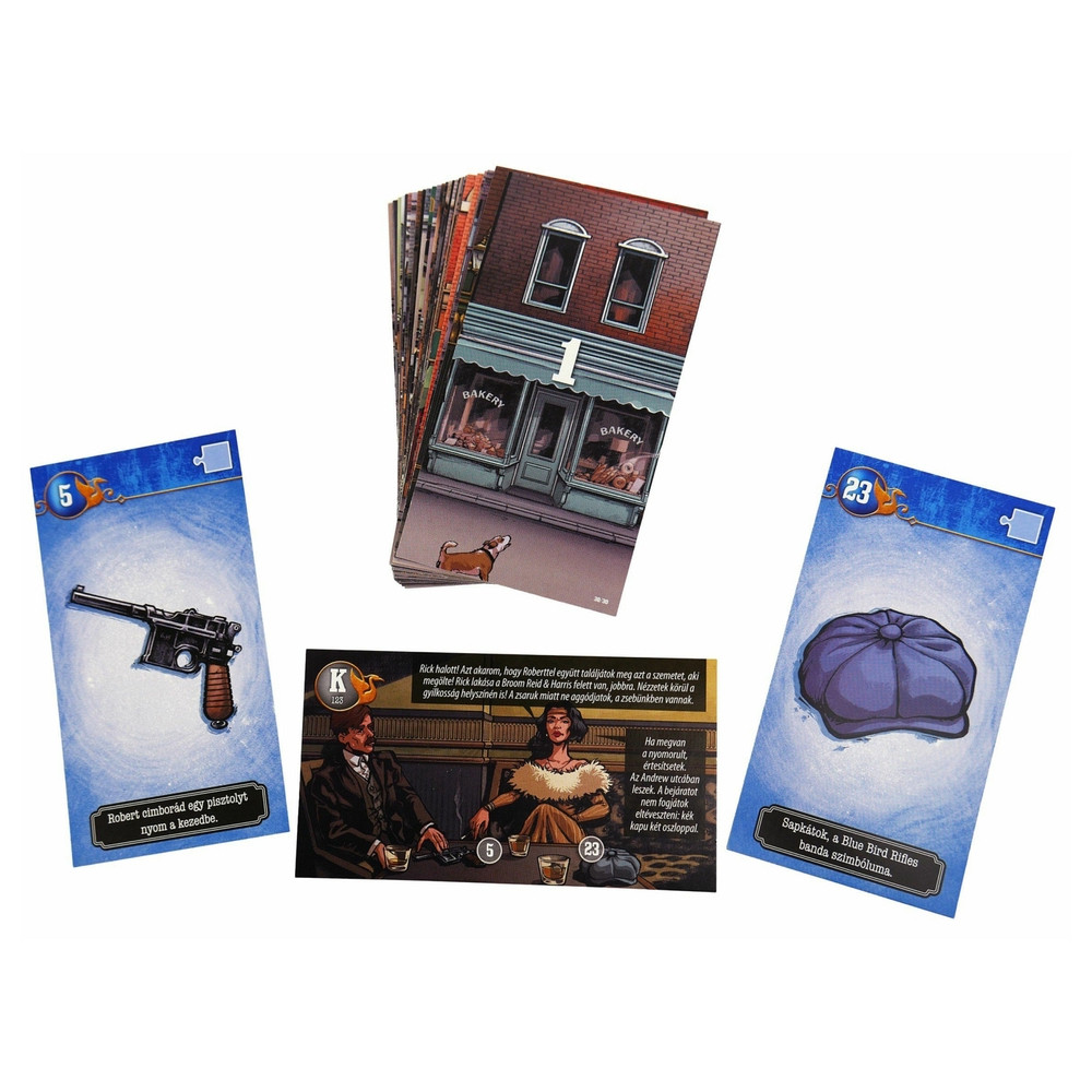 • Helyszínek és nyomok kártyákból: a pakli lapjai vezetik a történetet; fordítsatok fel kártyákat, kombináljatok információkat, keressetek kapcsolatokat.