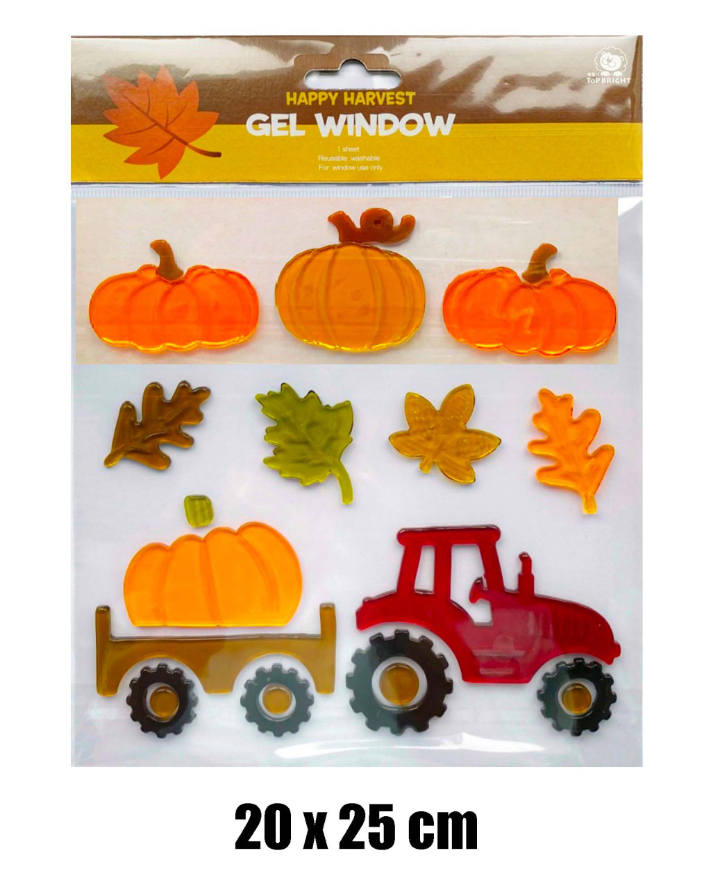 Zselés ablakdísz sütőtökkel és piros traktorral. Gyors és egyszerű a felhelyezése, mellyel karácsonyi hangulatot teremthetünk.