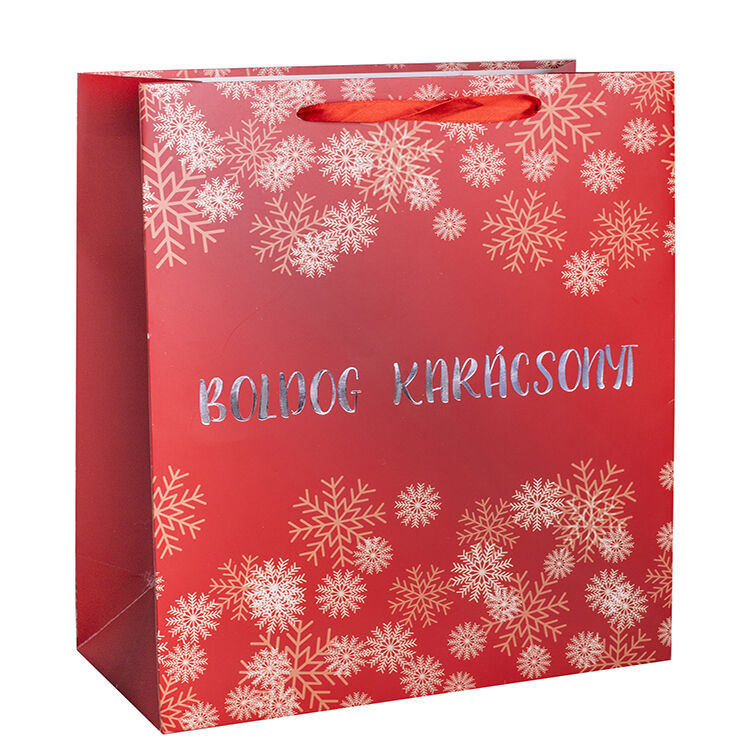 Ajándéktasak - közepes (bordó alapon Boldog Karácsonyt felírat)