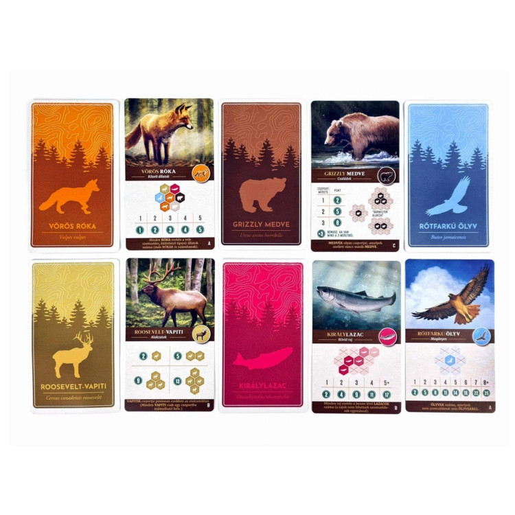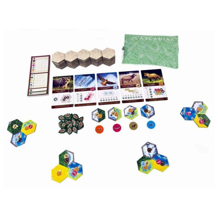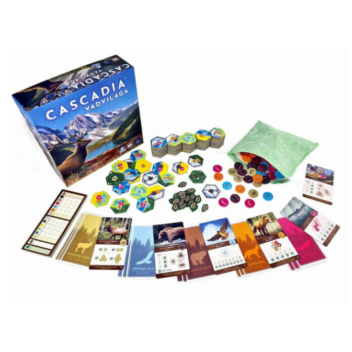 Cascadia vadvilága - egy csodálatos logikai játék az egész család számára!Tegyetek egy utazást a pacificus-észak-amerikai flóraterületre, miközben versenyeztek Cascadia legharmonikusabb ökoszisztémájának létrehozásáért!A körök egyszerűek - válasszatok egy lapka-jelző párost és helyezzétek le őket az egyre növekvő ökoszisztémátokba. Szerezzetek pontokat a vadvilágcélok teljesítésével és hozzátok létre a legnagyobb élőhelyeket!A változatos pontozási célokkal minden egyes Cascadia játék egy teljesen új élményt hoz az asztalotokra.