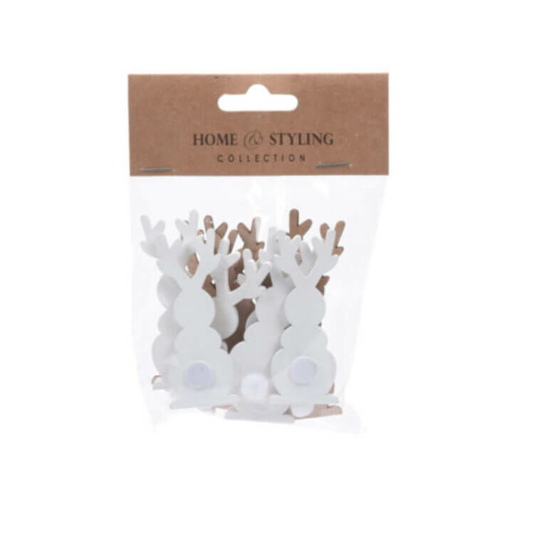 Dekorációs figura (12db-os, öntapadós ülő rénszarvas natúr fa és fehér színben)