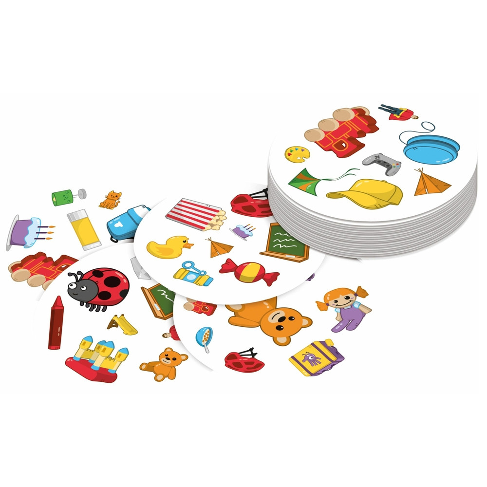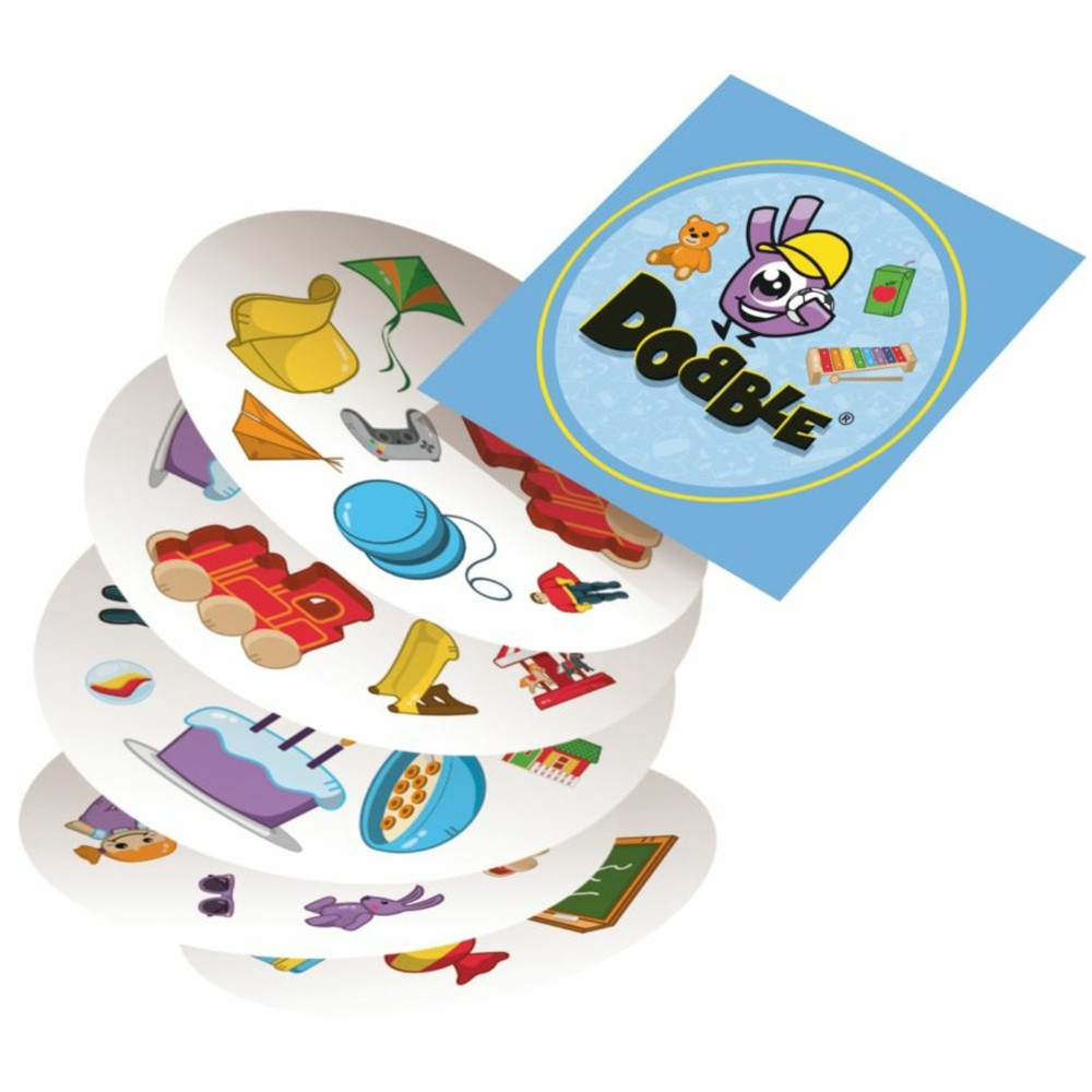 A Dobble Kids könnyen tanulható, vidám hangulatú játék, amely gyorsan a gyerekek – és a felnőttek – nagy kedvence lesz otthon, óvodában vagy akár utazás közben is.