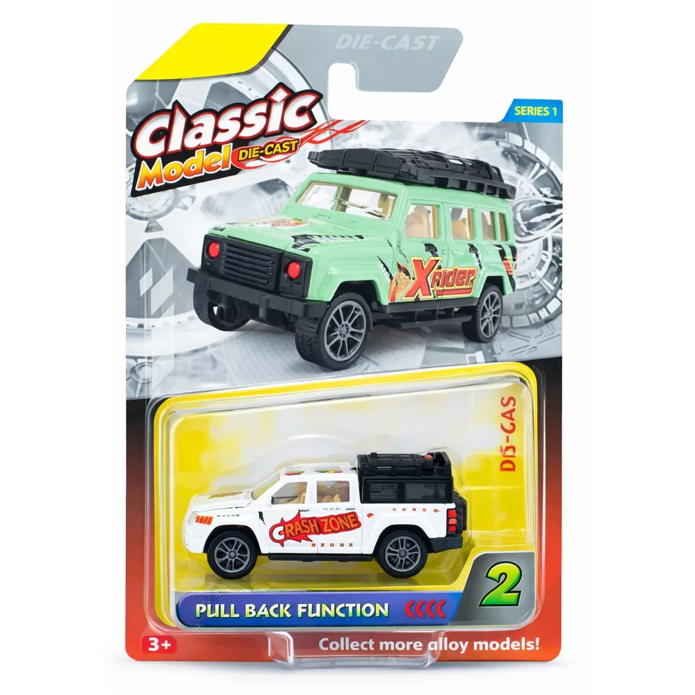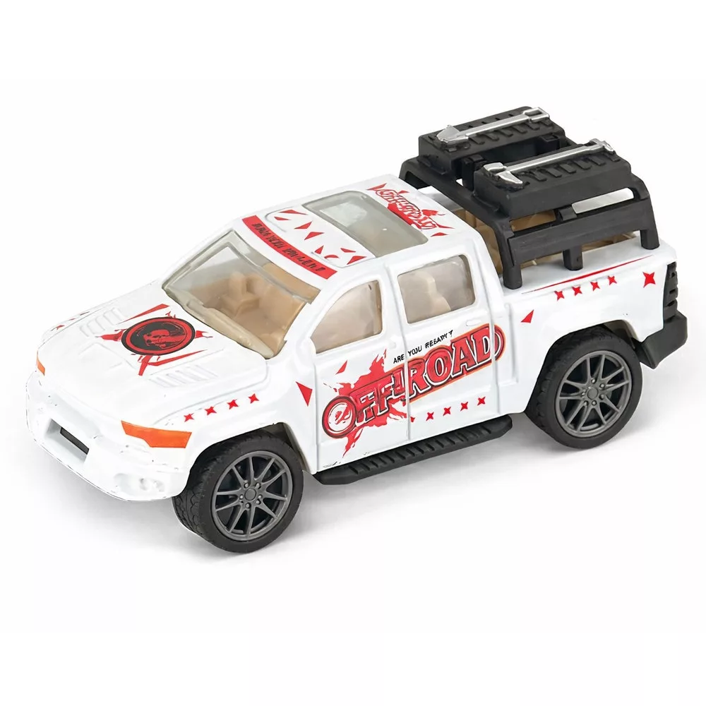 A fehér fém Off-Road autó feltűnő, modern megjelenésével könnyen a gyűjtemény kedvence lesz. Visszahúzós kivitelű, így egyszerűen elindítható, a masszív terepjáró forma pedig remek alap a kalandos utazásokhoz és a saját „terepversenyekhez”.