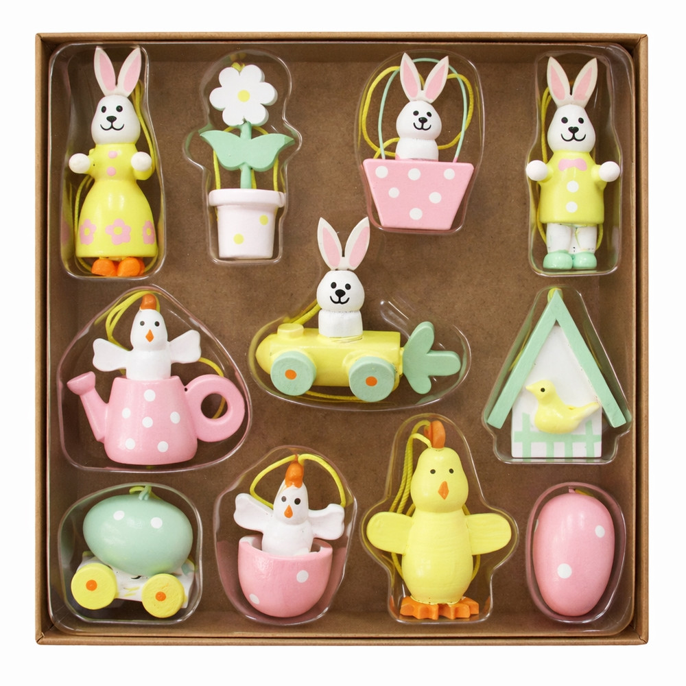 Húsvéti dekorációs figura, akasztós - 11 db-os (nyuszi, csibe, tojás)