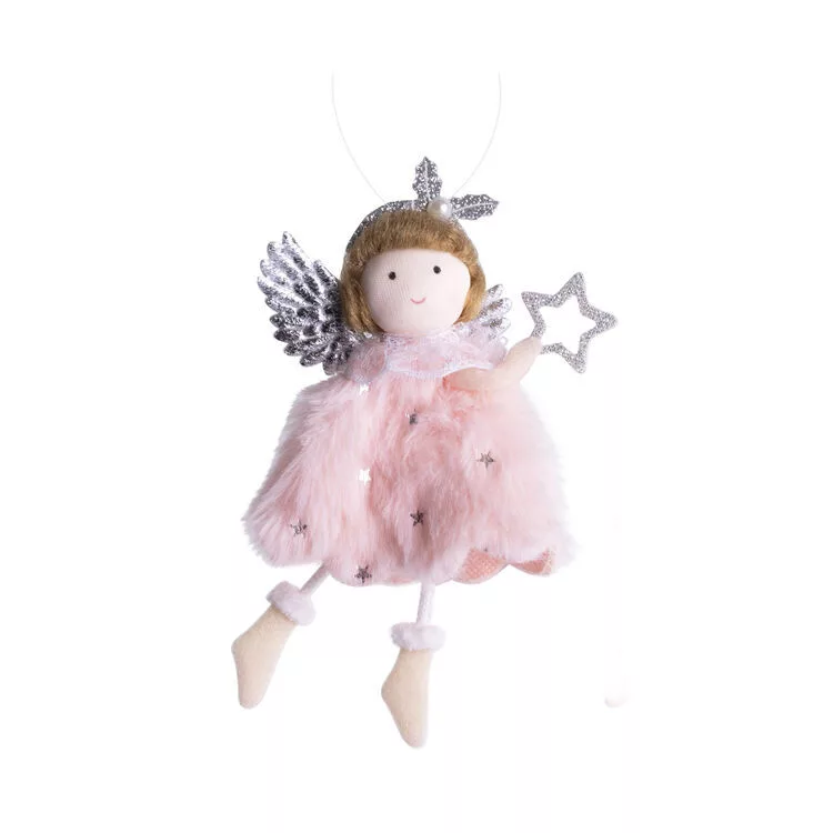 Textilből készült karácsonyi dekoráció- rózsaszín angyal fejdísszel. Ideális karácsonyfára és belső terek ünnepi díszítésére.