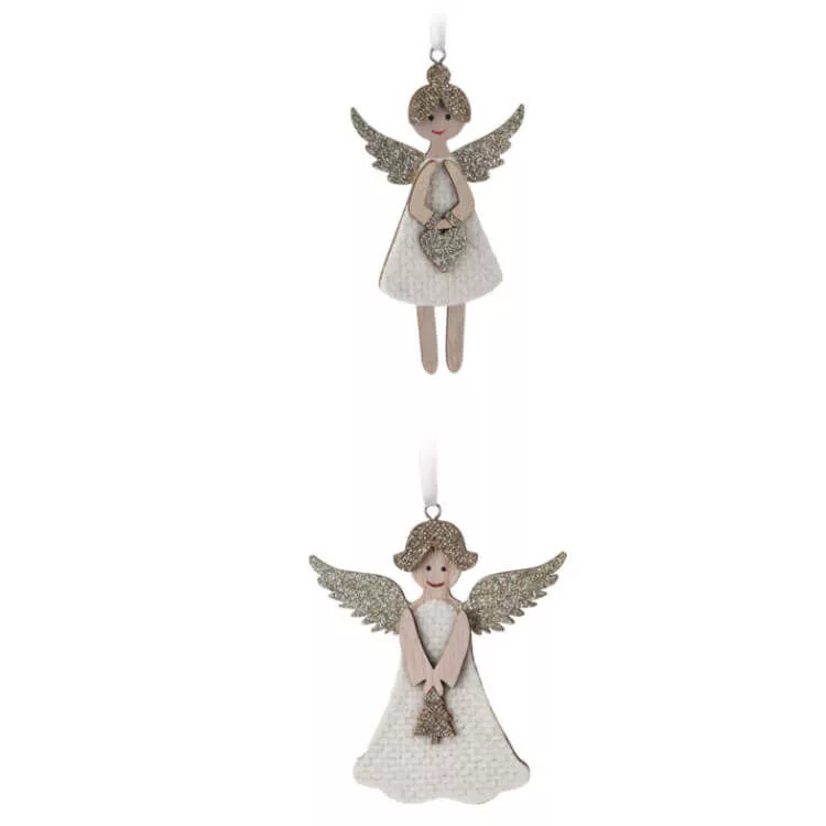 Karácsonyi dekorációs figura, 2 db-os angyal (fehér ruhában arany színű csillámpor díszítéssel)