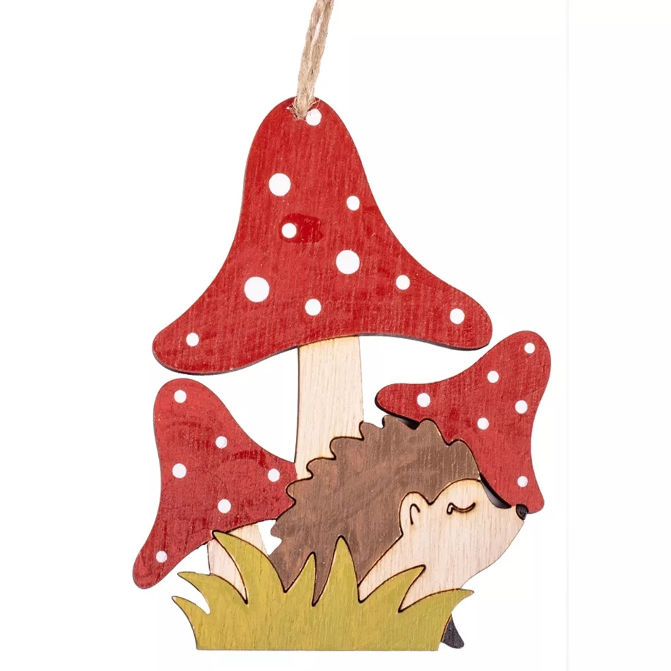 Kedves, őszi hangulatú ajtódísz, amelyen a piros pöttyös gombák és a megbújó süni együtt teremtenek bájos, természetközeli összhatást. A fa dekoráció meleg színeivel szépen illik be az őszi lakásdekorációk közé, ajtóra, falra vagy akár ablak mellé akasztva is remekül mutat.