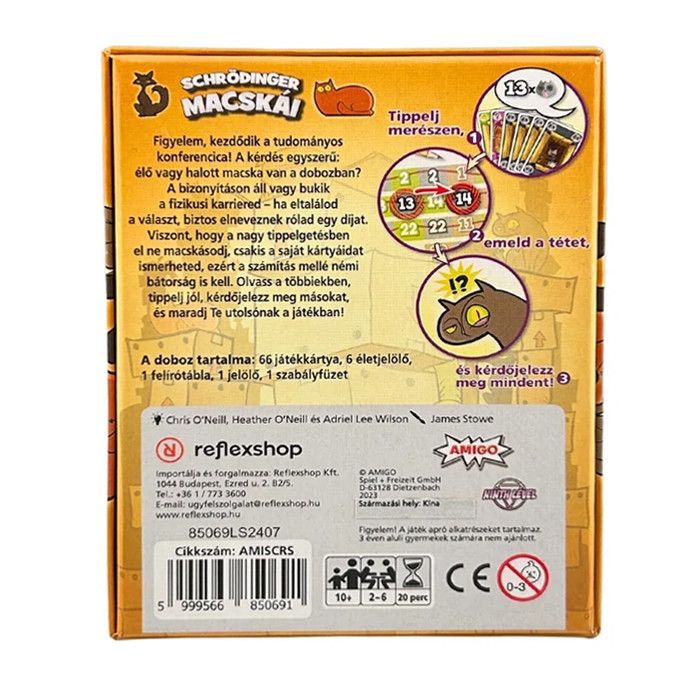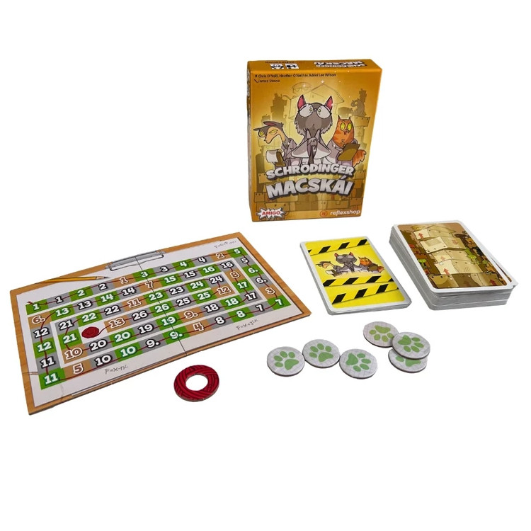 A Schrödinger macskái társasjátékban meg kell tippelnetek, hogy milyen macskák vannak a dobozokban, de ami a legfontosabb, hogy mennyi! Ezekkel az állításokkal igyekeztek túllicitálni egymást. A rossz hírünk az, hogy csak a nálad lévő kártyákat ismered. Tehát vagy megpróbálod okosan felmérni a helyzetet, vagy kíméletlenül blöffölsz.