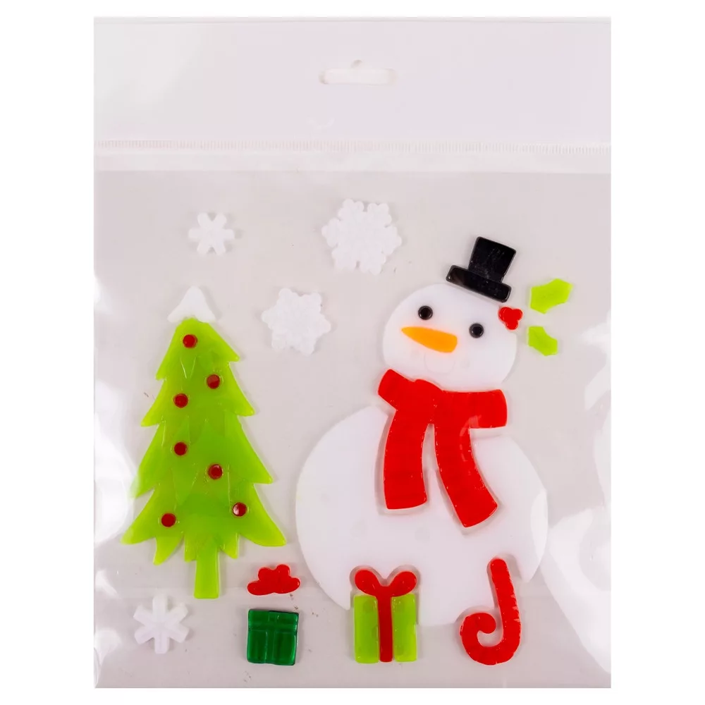 Zselés ablakdísz (fenyőfa, hóember, ajándékok)